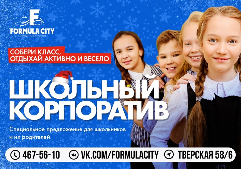 🎳 Formula City приглашает детей и их родителей весело отметить приближение Нового Года! Специальные предложения для школьников, детское меню, поздравления деда мороза и снегурочки, дискотека