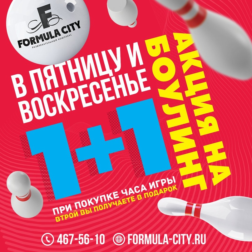 🎳 Теперь вы можете отдыхать активно и весело за игрой в боулинг ещё дольше! Каждую пятницу и воскресенье в Formula City действует специальное предложение! При