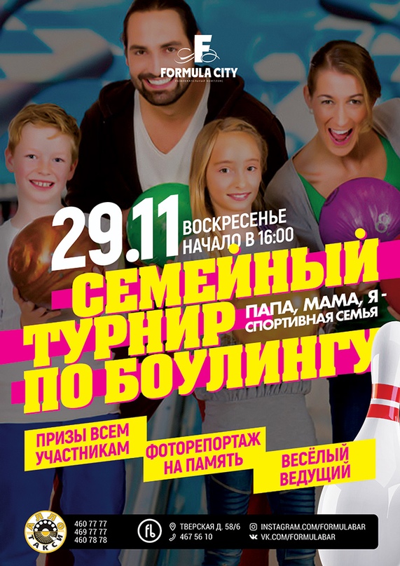 🔥 29 ноября (воскресенье) в 16:00 состоится первый Семейный турнир по боулингу — «Папа, мама, я — спортивная семья». Приглашаем всех желающих принять участие! Собирайте
