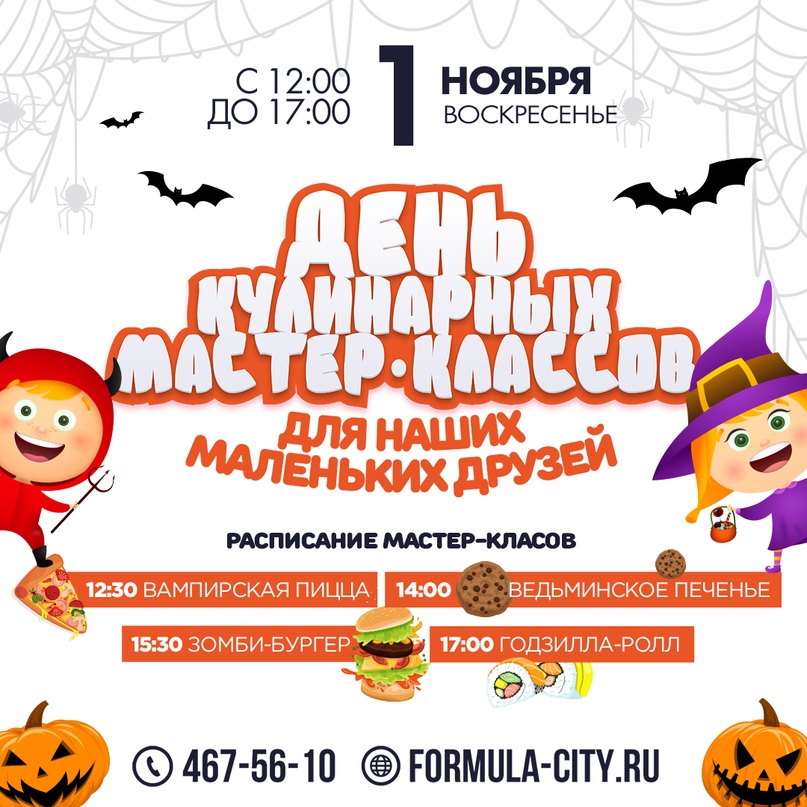 ❤ 1 ноября (воскресенье) мы приглашаем вас на «День кулинарных мастер-классов» посвящённых Празднику Хэллоуин в Formula City! Мы продолжаем серию образовательных мероприятий для наших маленьких