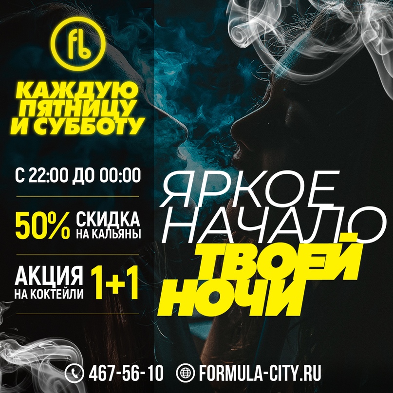 🔥Не забывай, что каждую пятницу и субботу c 22:00 до 00:00 — время для яркого начала твоей ночи! Бери друзей, приходи в Formula Bar и