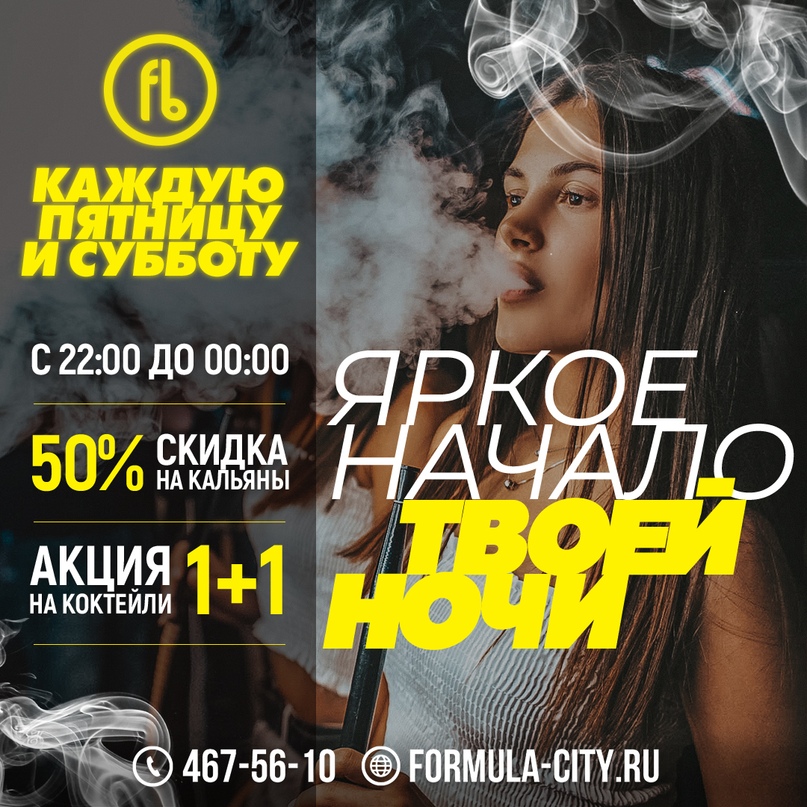 🔥Не забывай, что каждую пятницу и субботу c 22:00 до 00:00 — время для яркого начала твоей ночи! Бери друзей, приходи в Formula Bar и